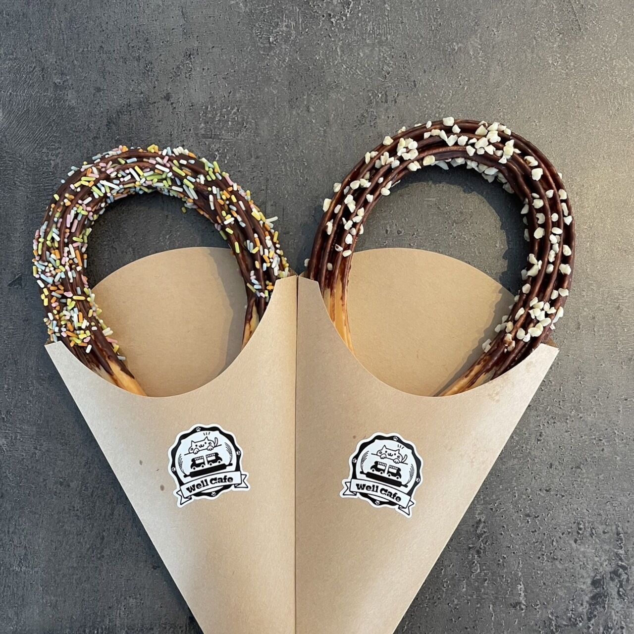12月限定でホワイトチョコのクリスマスリースのような可愛いフープ型チュロスの登場です。もちろん、米粉100%チュロスでご用意!