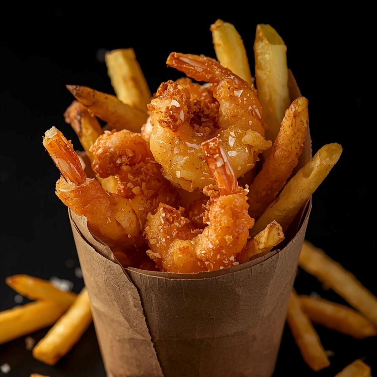 サクサクのシュリンプフライとフライドポテトの組み合わせ!ボリューム満点でお得な一品です!