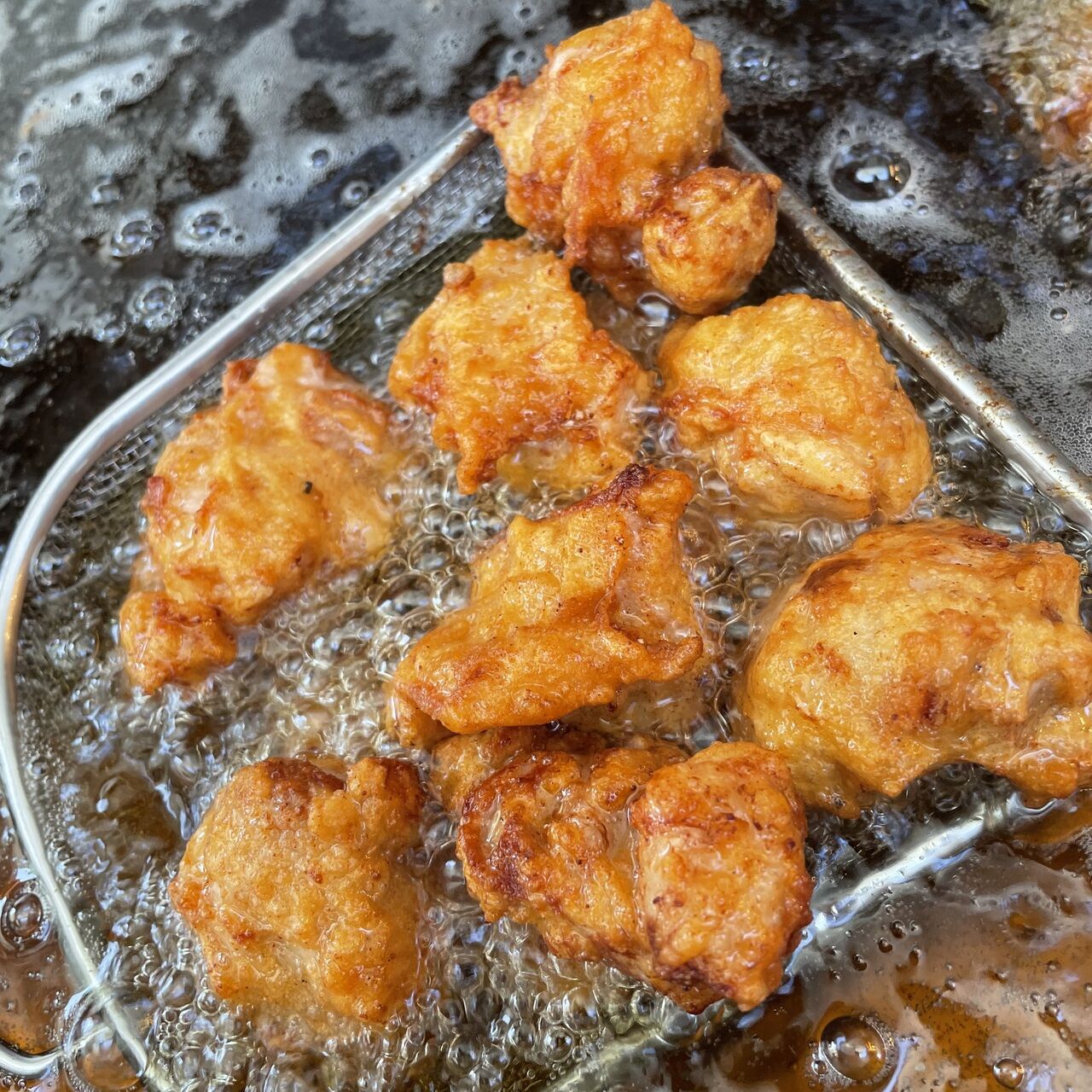 沖縄は石垣島の塩とピパーチを入れ 秘伝のスパイス粉を使用して揚げています