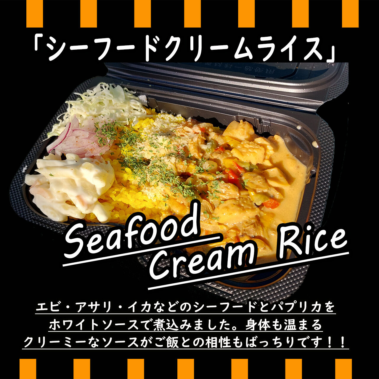 エビ、アサリ、イカなどのシーフードとパプリカをホワイトソースで煮込みました。身体も温まるクリーミーなソースがご飯との相性もばっちりです!