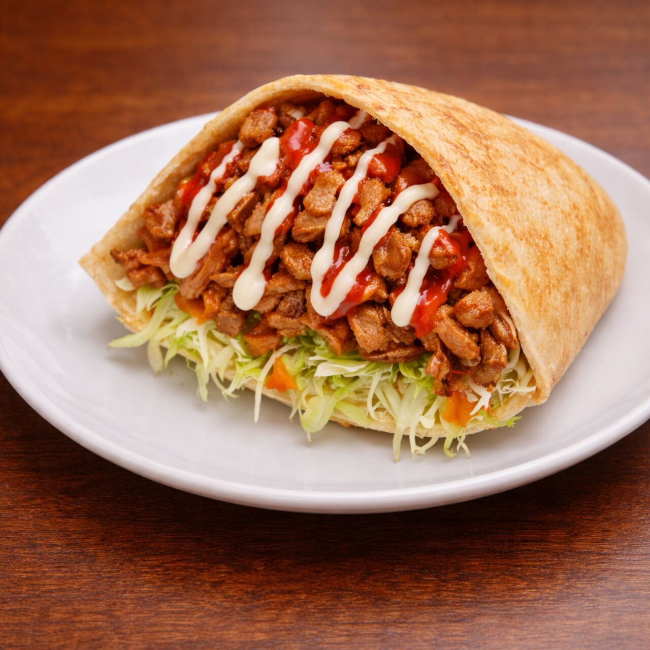 ジューシーなお肉と新鮮な野菜をトルティーヤで包んだ人気のケバブラップです。