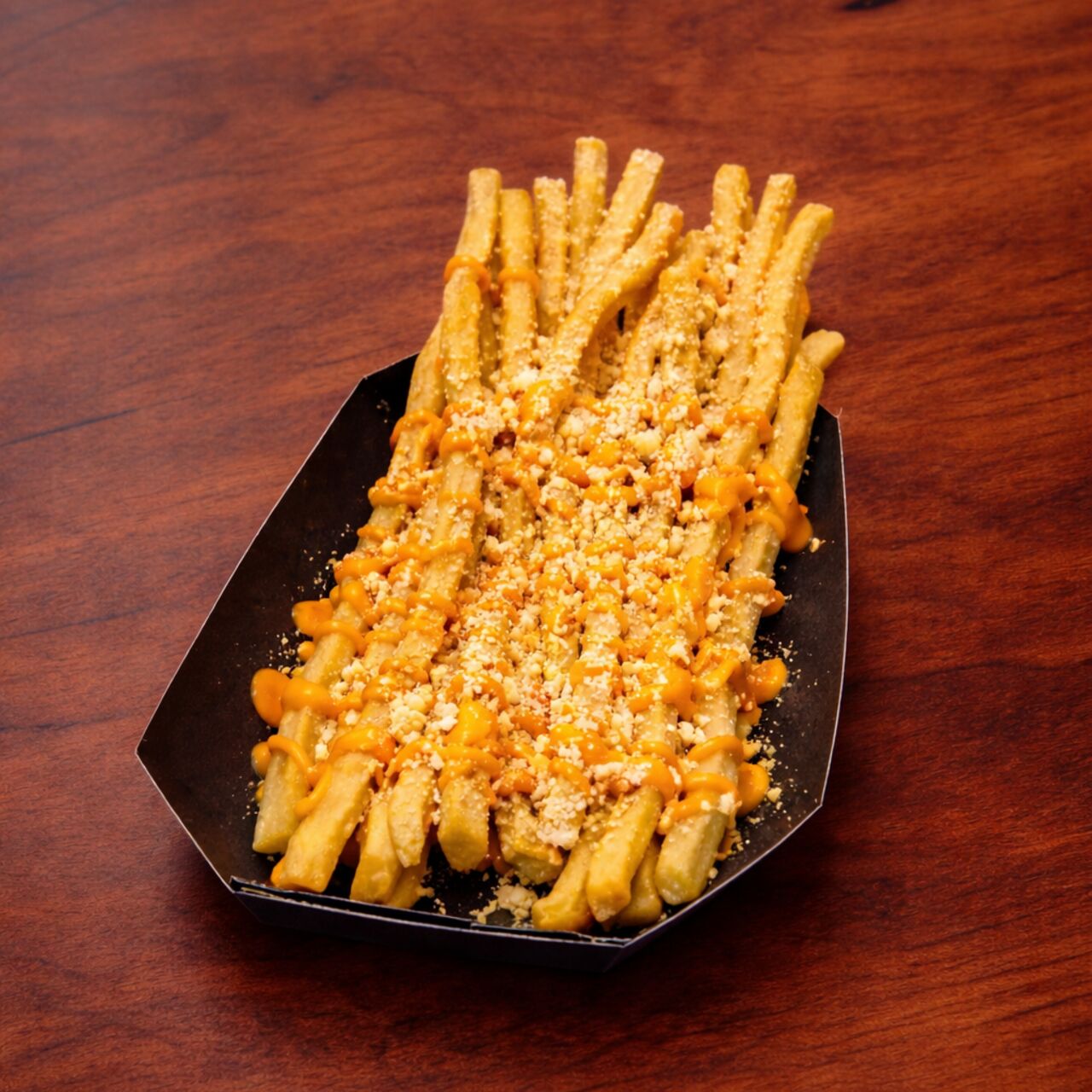 外はカリッと、中はホクホクのロングポテト。 濃厚チェダーチーズソースをたっぷりかけ、さらにチーズをトッピング。 チーズ好きにたまらない、コク深い贅沢な一品。