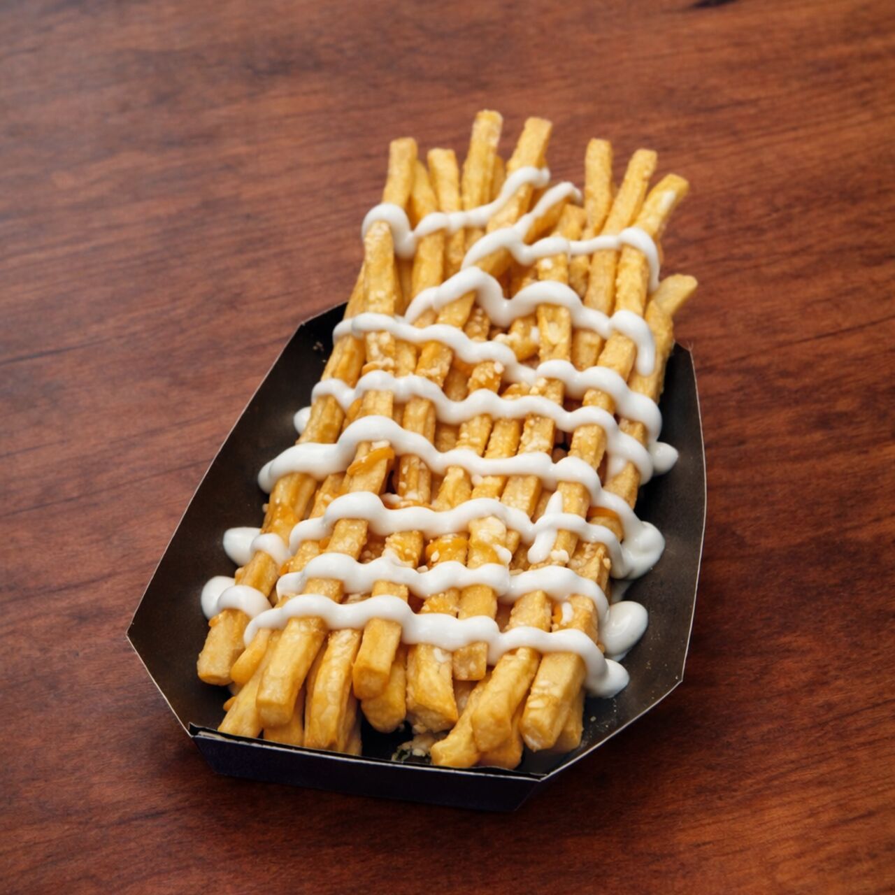 外はカリッと、中はホクホクのロングポテト。 コクのある特製ケバブソースをトッピング。 甘みと旨みが広がる、やみつきになる味わい。