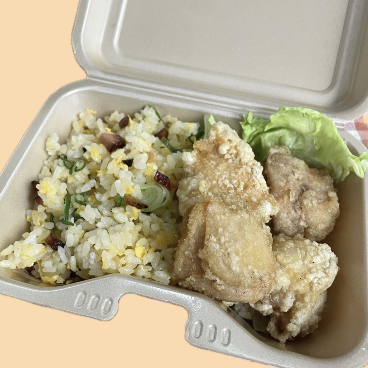 国産鶏肉使用!油も全て米油を使用しています。しっかり味の冷めても美味しい塩唐揚げと炒飯のセットです!