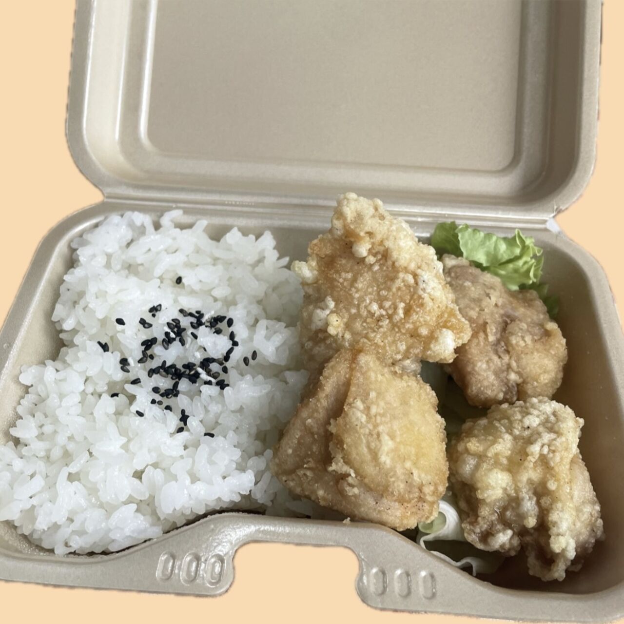 国産鶏肉使用!油も全て米油を使用しています。しっかり味の冷めても美味しい塩唐揚げとご飯のセットです。