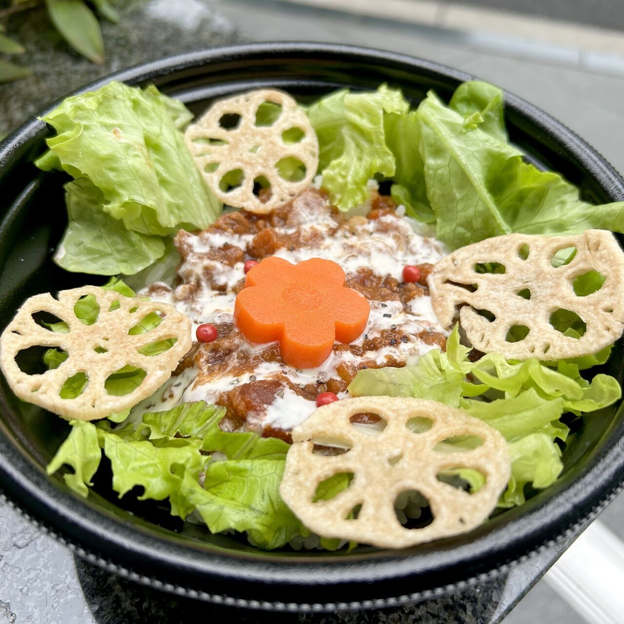 香味野菜とお肉などでじっくり煮込んだボロネーゼソースに特製チーズソースをかけて提供致します。(ご飯普通盛り850円、少なめ800円、大盛り1000円)